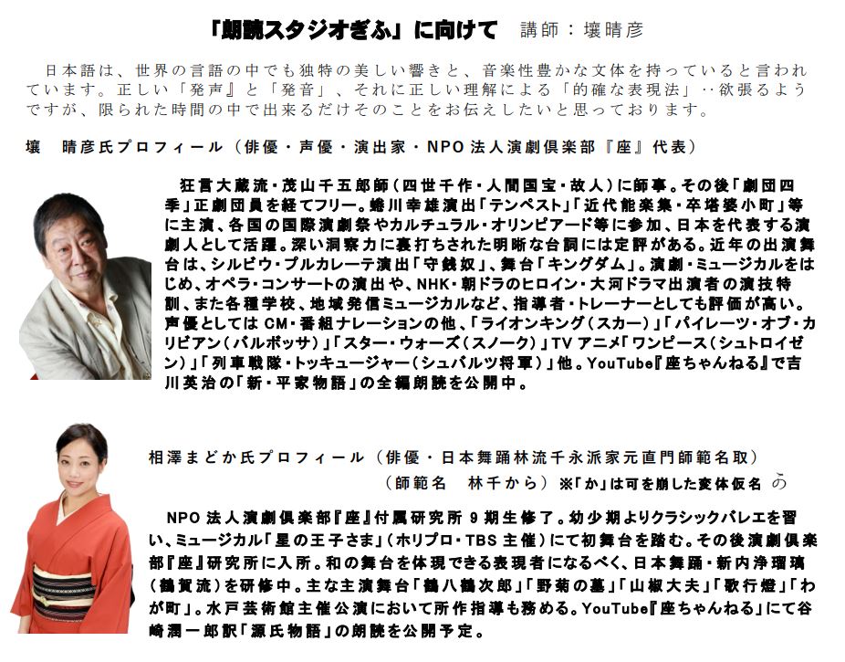 活躍中の壤晴彦氏を講師に迎え、日本語について、朗読、演劇について